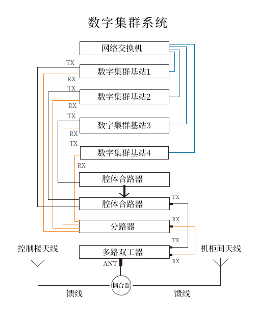 由于整個(gè)萬達(dá)廣場(chǎng)區(qū)域管理部門、使用單位多的特點(diǎn),頻率資源少的現(xiàn)狀,將本系統(tǒng)設(shè)計(jì)成4個(gè)信道的數(shù)字系統(tǒng),可以同時(shí)滿足8個(gè)語音的通話時(shí)隙,提高了語音通話的質(zhì)量,也增加了系統(tǒng)的實(shí)際運(yùn)用能力。