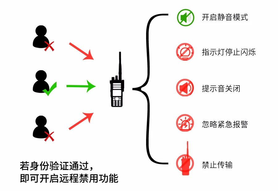 需要身份驗證的對講機遠程禁用功能,允許用戶通過菜單向目標(biāo)對講機發(fā)起對講機禁用命令。