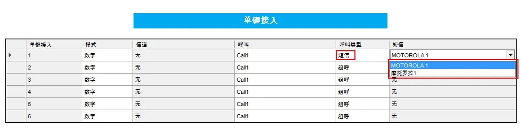 3.設(shè)置單鍵接入的呼叫類型為:短信,選擇文本內(nèi)容。