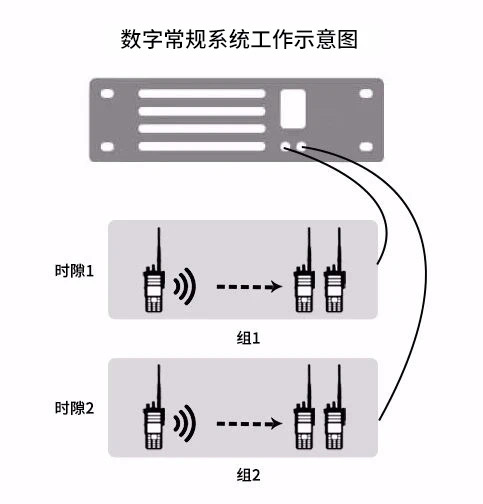 常規(guī)系統(tǒng)則是根據(jù)信道(時隙)固定分配使用的,不具備空閑信道(時隙)的分配能力,如果多組同時使用同一信道(時隙)會導(dǎo)致互相干擾;有些信道(時隙)使用率低,有空閑狀態(tài);而有些信道(時隙)過于繁忙,容易處于阻塞狀態(tài)。