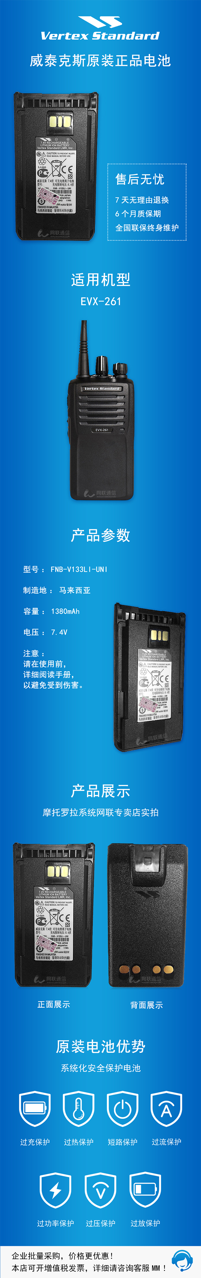 FNB-V133LI-UNI EVX-261鋰電池 1380mAh